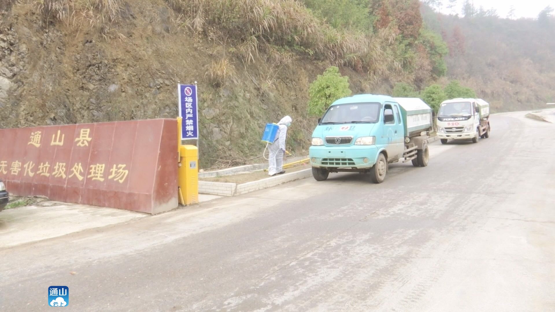 1月29日一大早,记者在县无害化垃圾处理场看到,处理场工作人员正在为进出的垃圾转运车进行喷洒消毒,连倾倒入内的垃圾也喷洒上了消毒水进行消毒。
