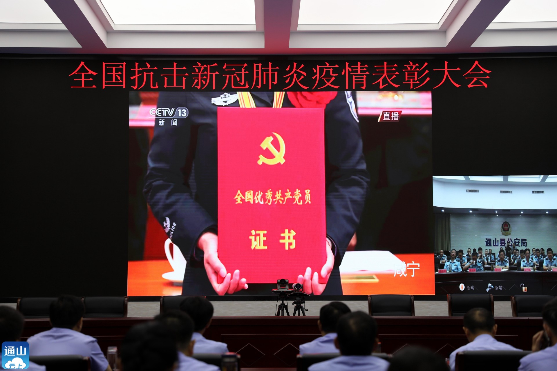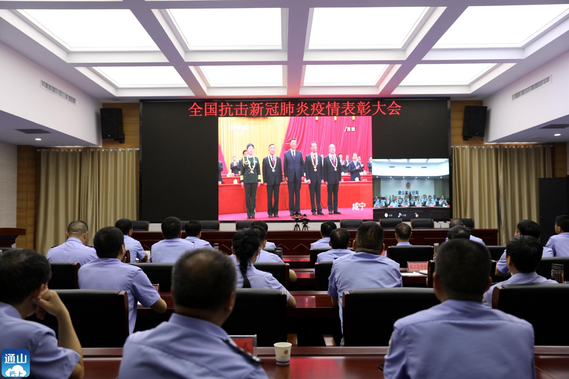 本网讯(通讯员 柯国强)今天(9月8日)上午10时,全国抗击新冠肺炎疫情表彰大会在北京人民大会堂隆重举行。副县长、公安局局长姜黎明和全县公安机关民辅警,分别在视频会议室和各派出所收看收听会议盛况。