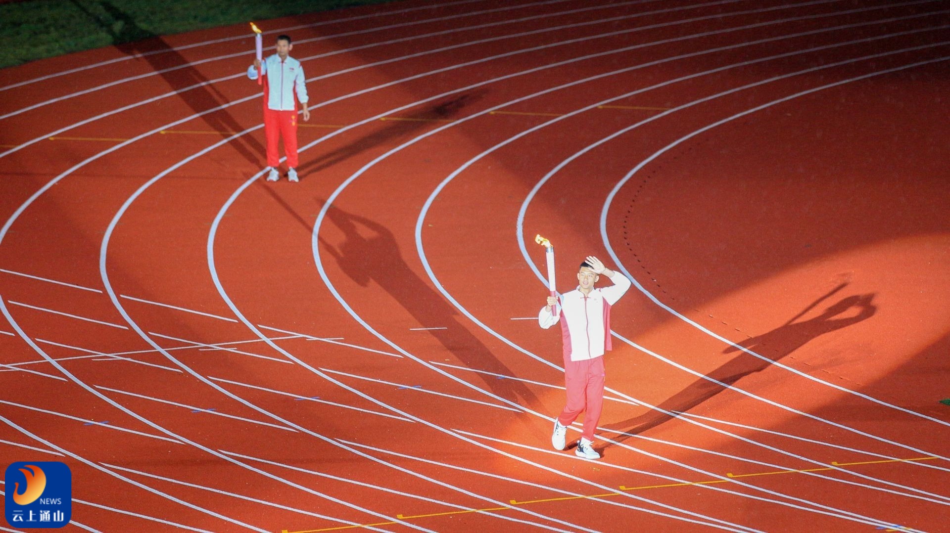 ▲两只承载着希望和梦想、欢乐与吉祥的“火凤凰”迎风腾飞,与6名火炬手共同点燃咸宁市第三届运动会“圣火”。