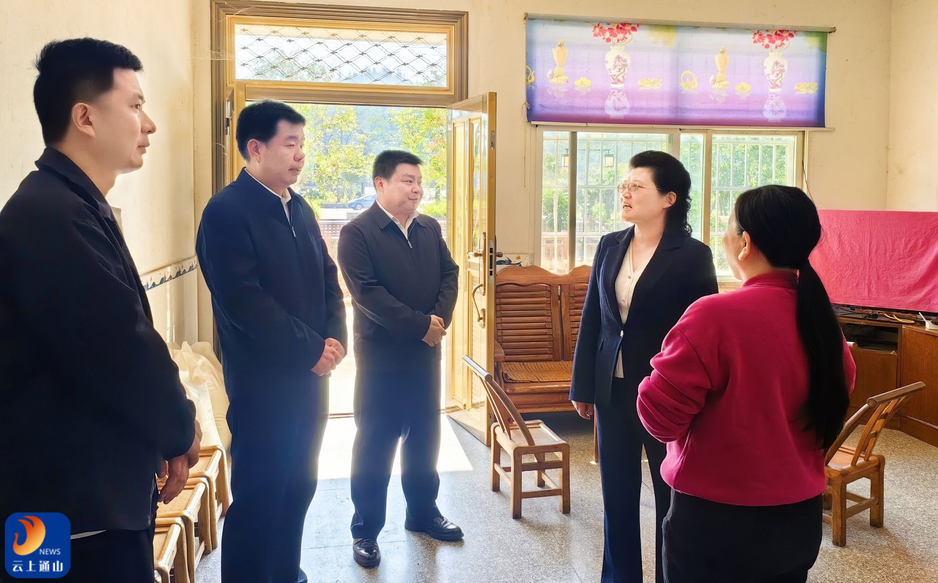 ▲省红十字会党组书记、常务副会长涂明珍一行到我县大畈镇大坑村,调研村集体产业、看望困难党员,县委副书记、县长吴涛参加活动。