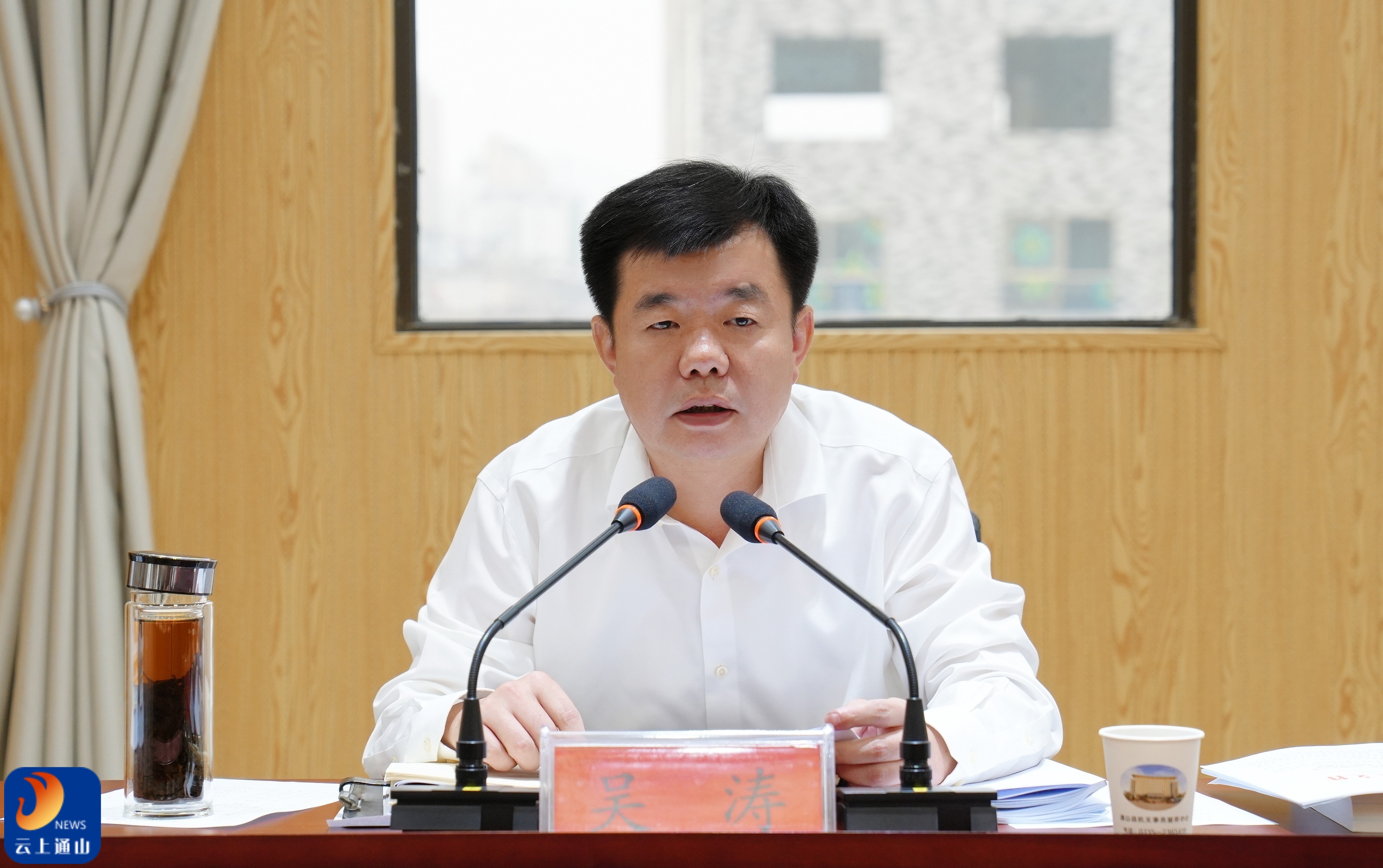▲县委书记、县长吴涛主持县委理论学习中心组专题学习会议并讲话。