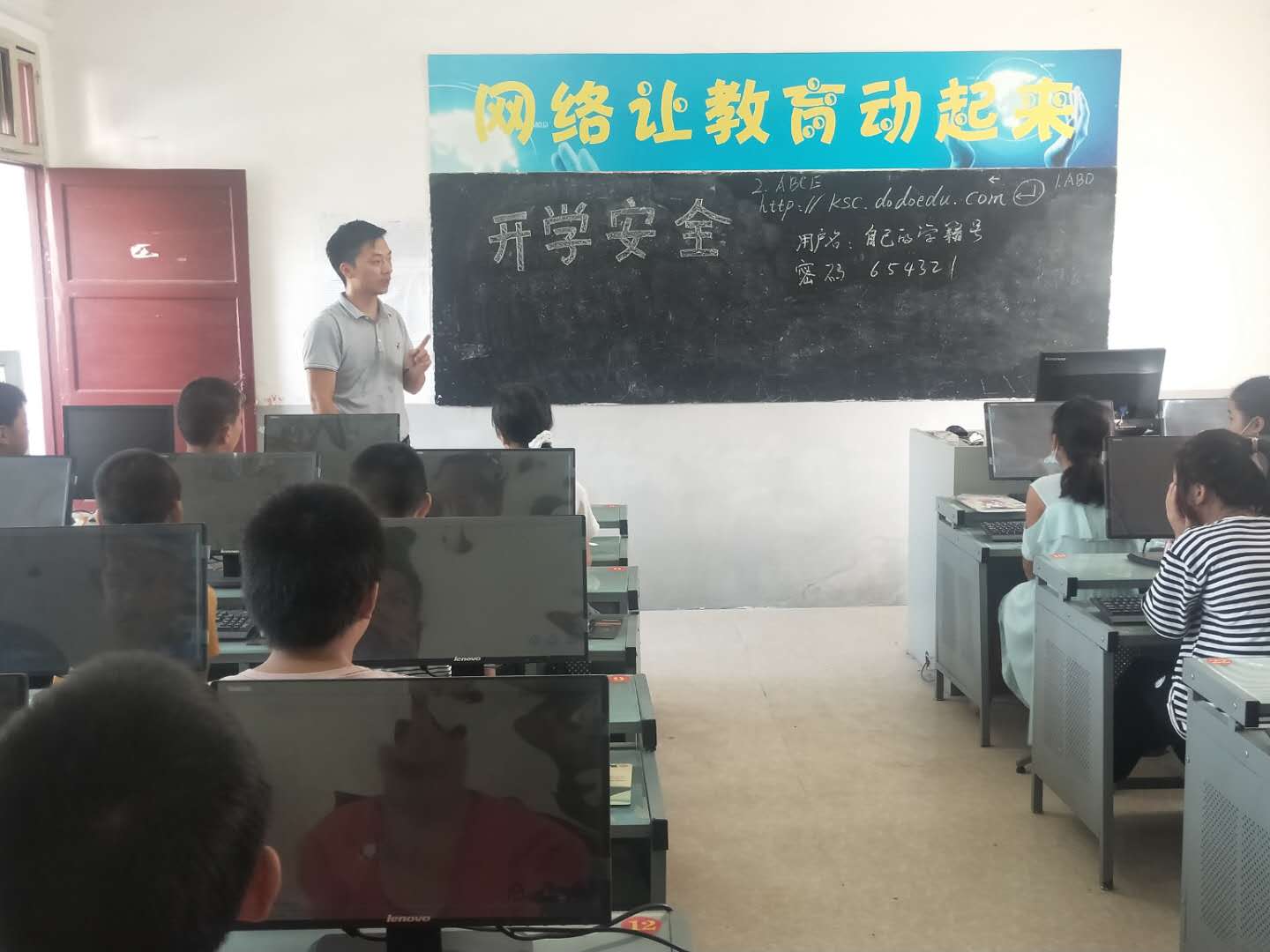 开学的第一天,看到校长吴汉钦在微机室为学生讲解安全知识、小学生如何预防传染病等简易卫生知识。下课后,很多学生围着我都笑着说校园环境好、老师讲得好!
