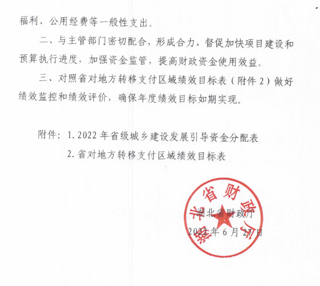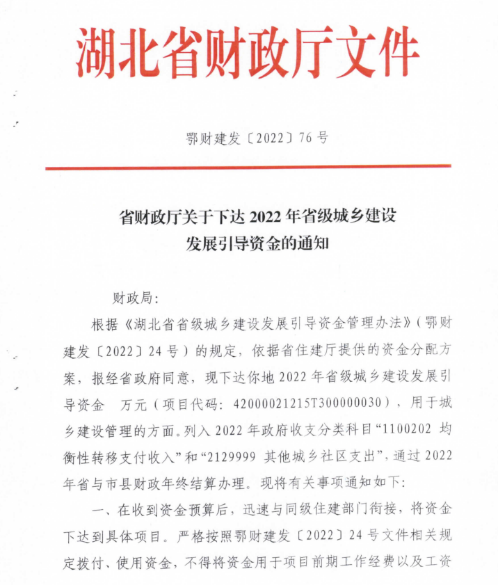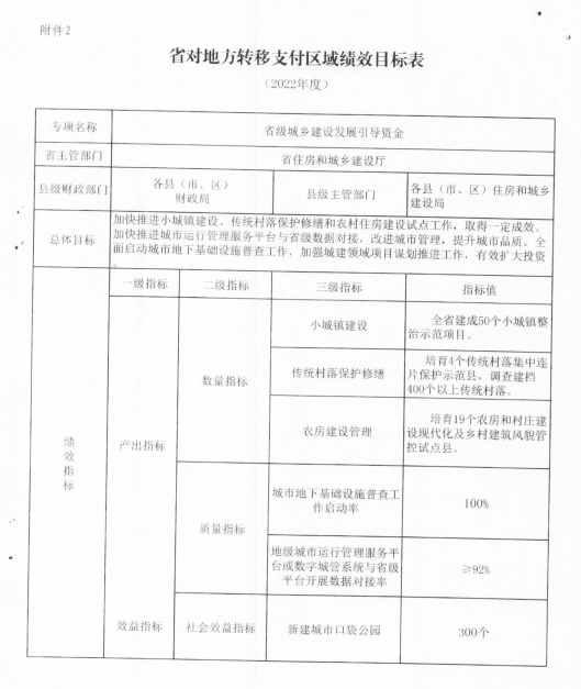 省财政厅关于下达2022年省级城乡建设发展引导资金的通知